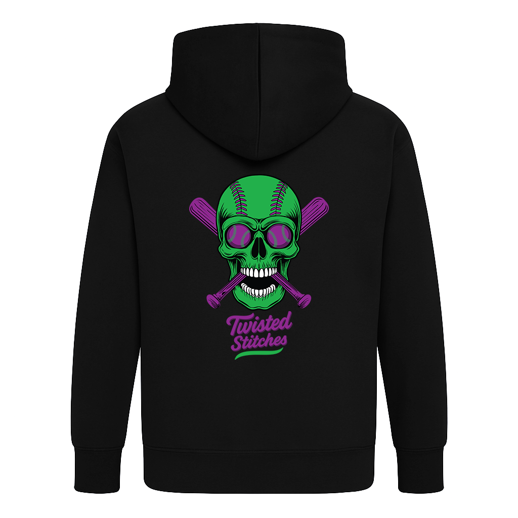 Available with either the skull graphic or Twisted Stitches wordmark on the front left chest. Large skull graphic and wordmark on the back.