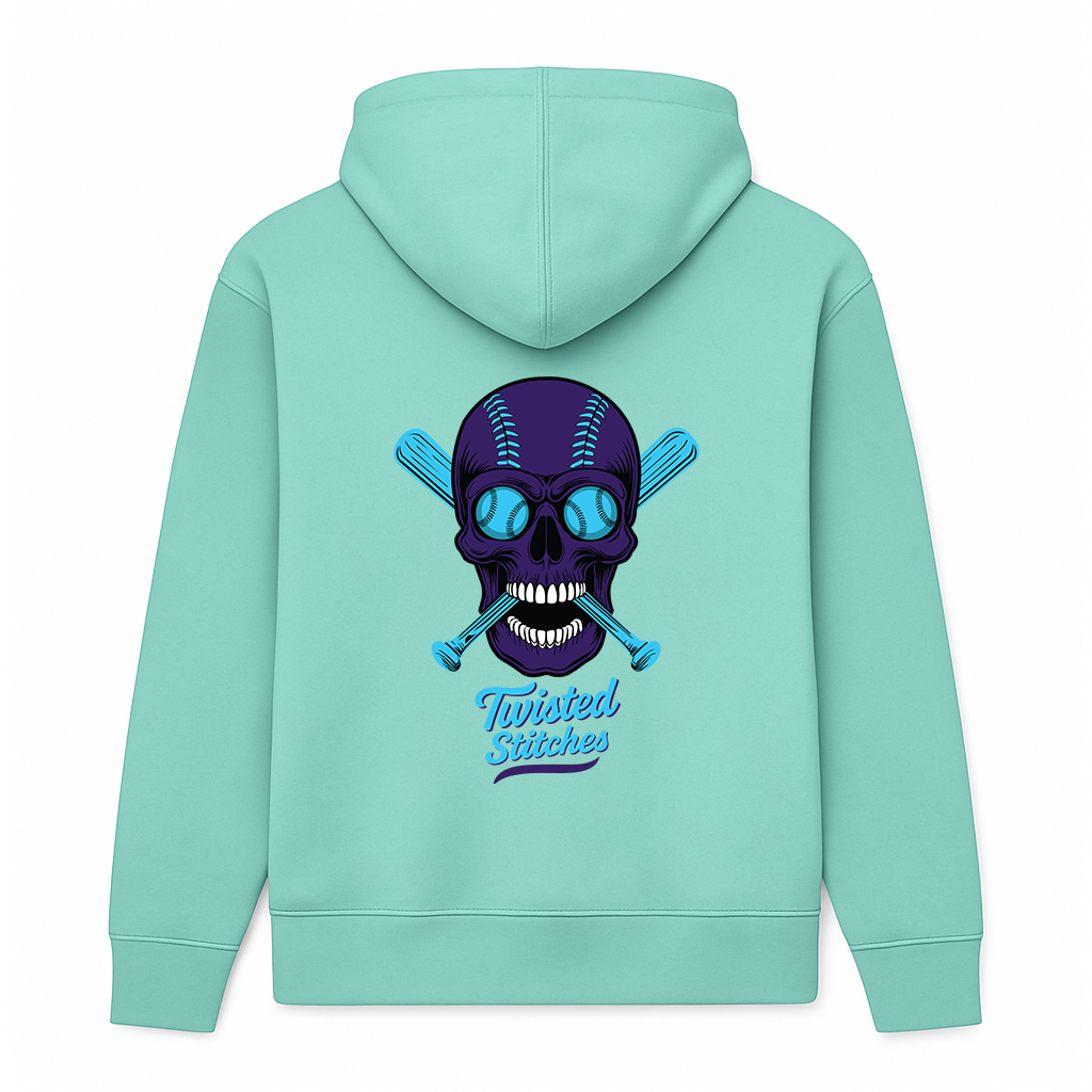 Available with either the skull graphic or Twisted Stitches wordmark on the front left chest. Large skull graphic and wordmark on the back.
